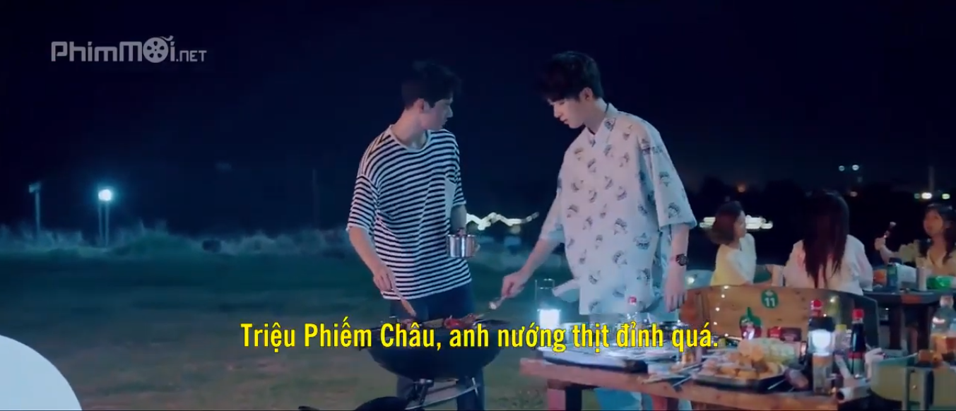 Tối hôm đó, cả đám đã có một bữa tiệc thịt nướng vô cùng vui vẻ, và cái kết chính là 3 “ông tướng” đã say sấp mặt sau màn thi thố xem ai tửu lượng cao hơn. Kết quả là Chu Tiêu đã phải thuê một phòng khác để Triệu Phiếm Chu có thể nghỉ ngơi. Cô nàng đã phải vật vã lắm mới có thể đỡ cậu lên phòng, thậm chí là nhét cậu lên xe đẩy hàng.
