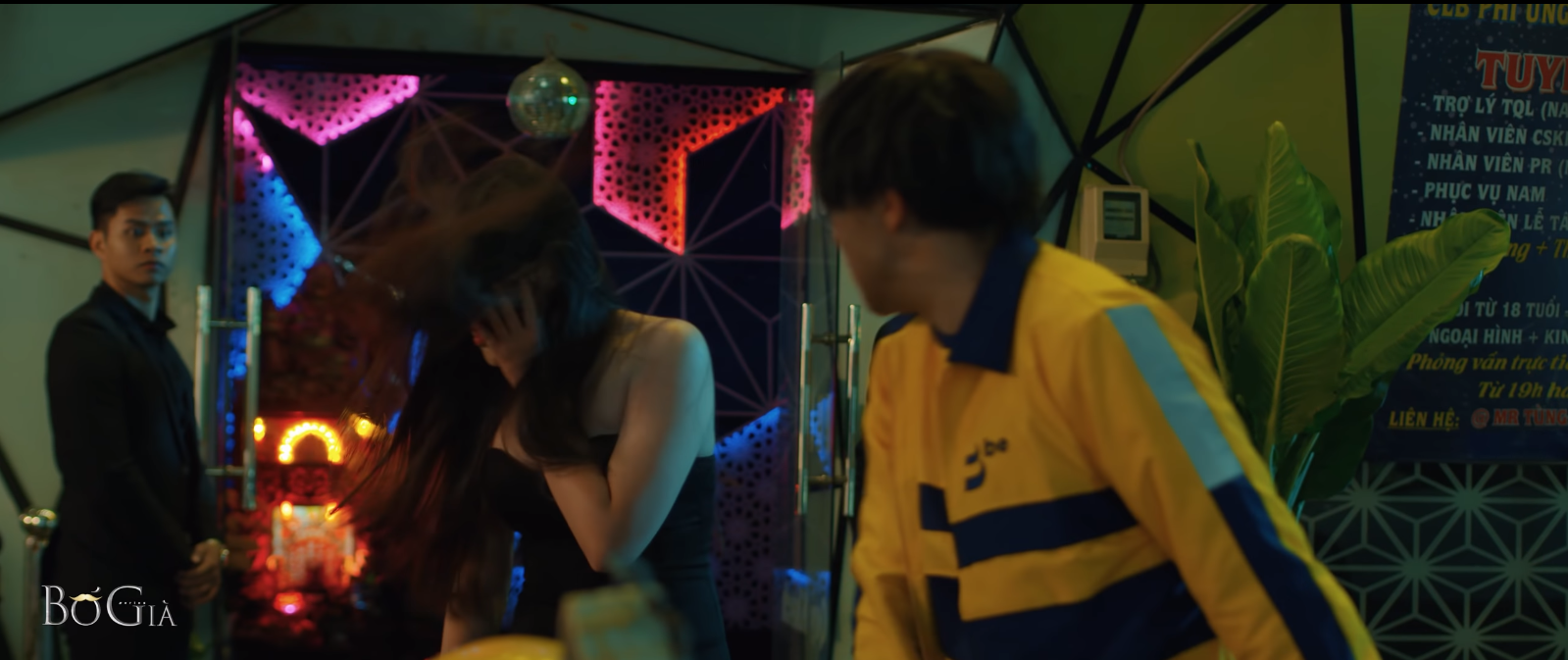 Khi mối quan hệ của bố và con trai vẫn chưa thể tốt hơn thì trong một lần chạy xe, ông hốt hoảng khi thấy Quý bước ra từ một quán bar. Sự sợ hãi của Quý khi nhìn thấy bố và nỗi hốt hoảng, thất vọng của bố già hiện diện rất rõ trên gương mặt hai nhân vật. Và cái tát mà bố già đánh Quý có lẽ là cái tát để có thể “thức tỉnh” cô con gái của mình, để cô nhìn lại xem mình đang làm một công việc như thế nào.