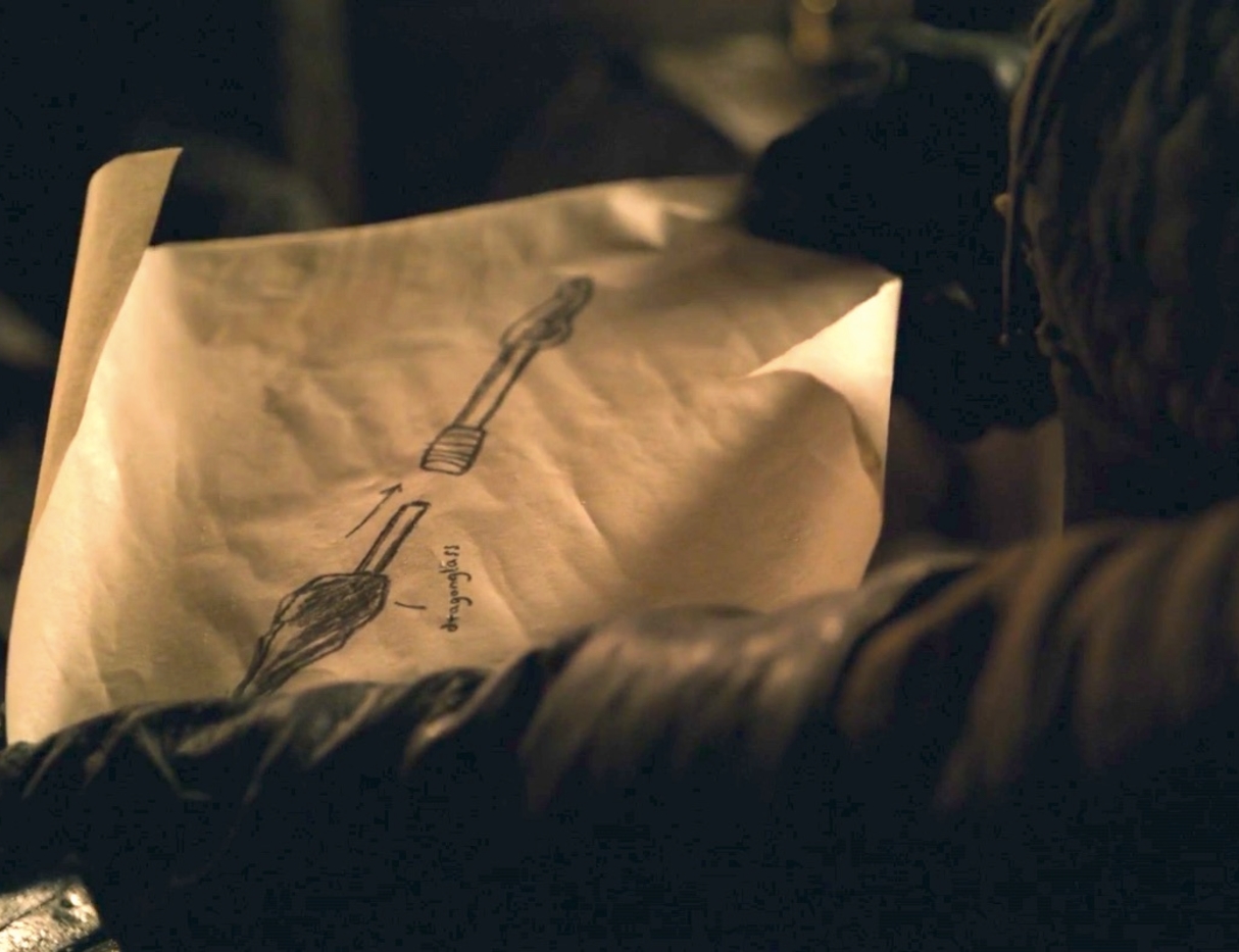 Bản vẽ vũ khí Arya đưa cho Gendry trong tập 1.
