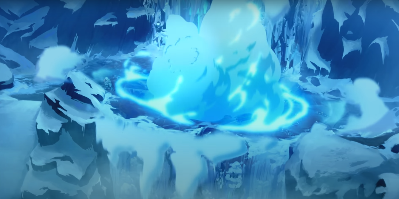 Giáng một đòn cực mạnh xuống mặt băng, cô tất văng tất cả kẻ địch xung quanh bằng sức mạnh phi thường. Tuy nhiên, điều này đã gây ra một trận núi lở vô cùng lớn, cuốn trôi tất cả kẻ thù và cả nữ chiến binh kiên cường.