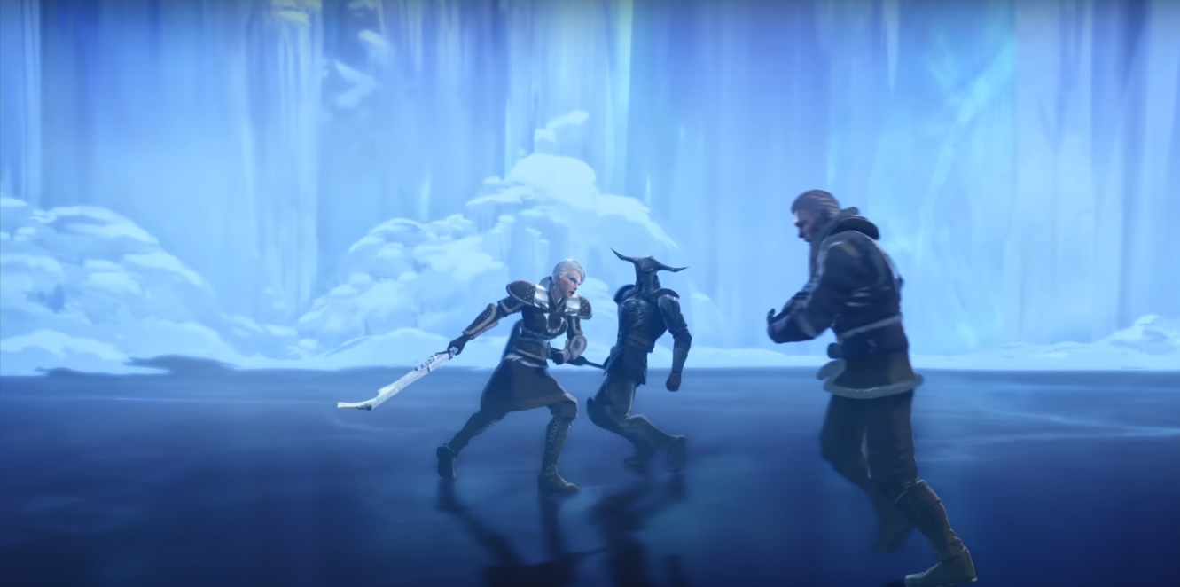 3 chiến binh cũng mãnh đã chống chọi rất dữ dội trước rất nhiều tên lính. Nhiệm vụ của họ có vẻ như là bảo vệ đứa bé sơ sinh kia. Tuy nhiên, một người đã hy sinh sau khi trúng tên từ quân địch. Trước sự áp đảo về số lượng, nữ chiến binh của phe Băng tộc đã có một quyết định vô cùng táo bạo, đó là phá tan lớp băng dưới chân để hy sinh, kéo theo những kẻ đang truy đuổi đứa bé.