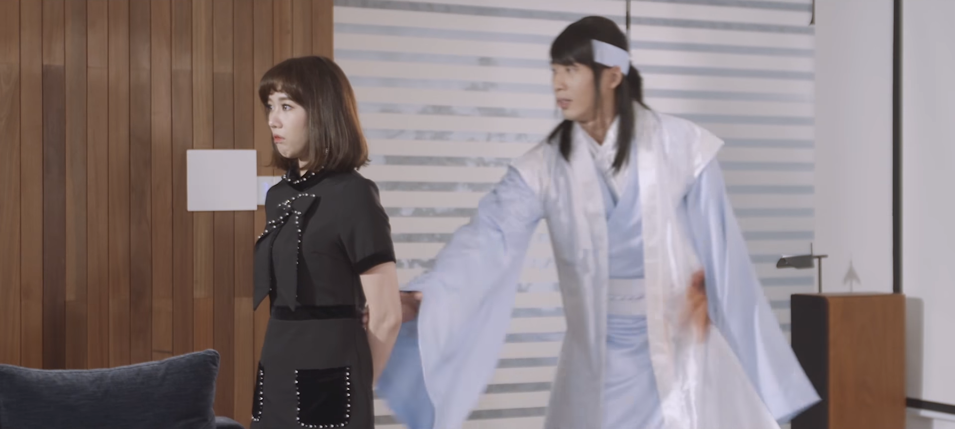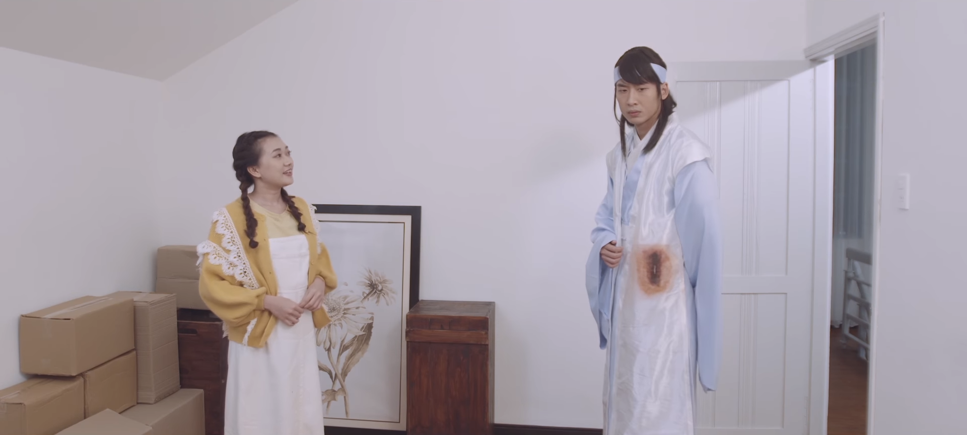 Ngược lại với căn bệnh sốc thời đại là cú sốc về ngôn từ. Nếu như bạn là người ở hiện tại mà luôn nghe đối phương lặp đi lặp đi lặp lại nào là 'cô nương' , 'công tử',…thì liệu bạn có sốc không? Với bộ ba Thiên Ý - BB - Phương Lan là có đấy. Họ từ sốc cho đến ngao ngán chàng công tử 'trời ơi' này. Dẫu vậy, Thiên Ý vẫn có lỗi do đã đánh chàng trai lạ nên vẫn là cho tá túc qua đêm đến khi chàng trai này bớt ngớ ngẩn.
