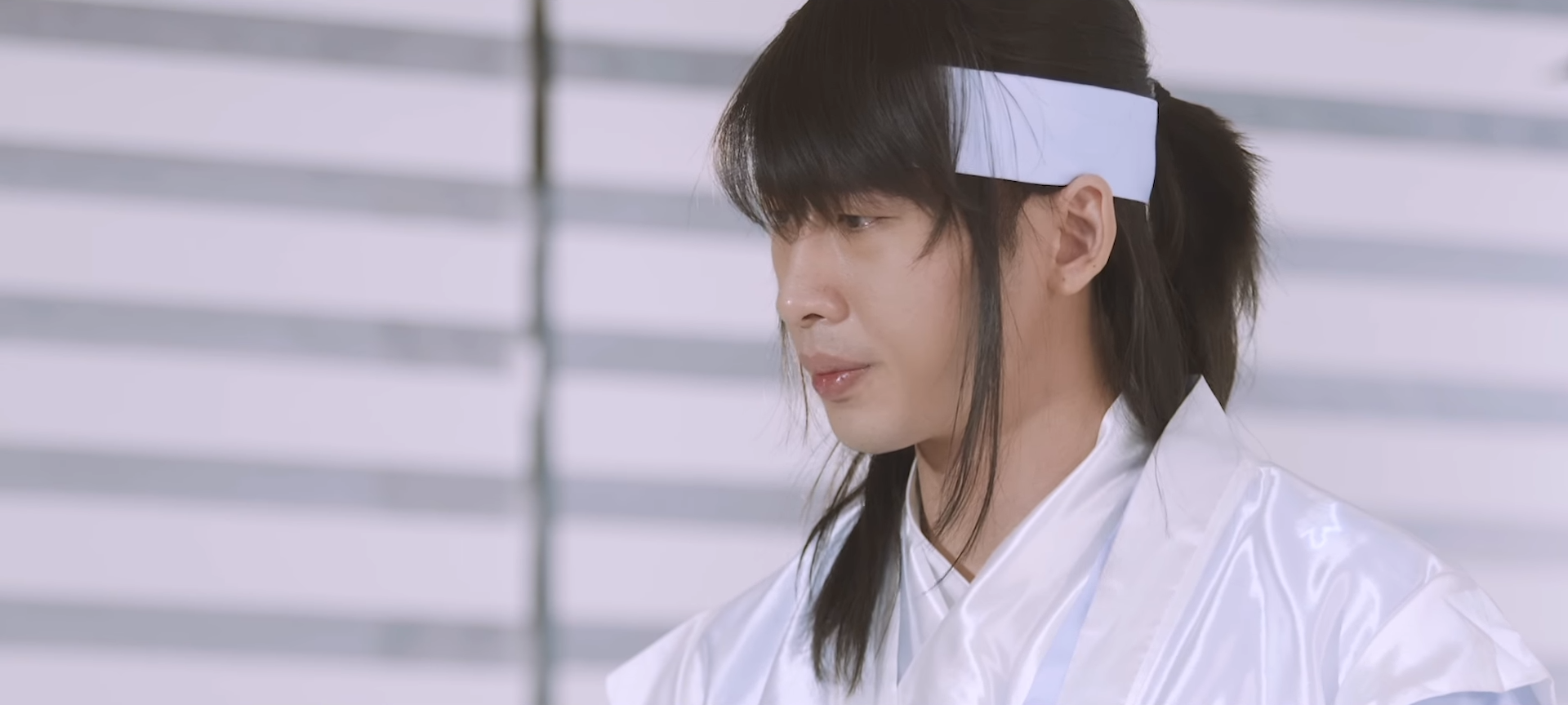 Và kết thúc tập 2, chàng trai kiếm hiệp được huấn luyện qua một lớp sử dụng nhà vệ sinh, tạm thời vượt qua giai đoạn sốc thời đại của mình.