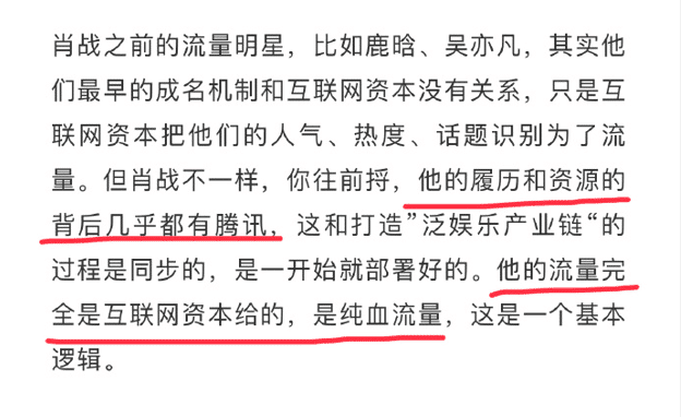 Nhưng Tiêu Chiến thì không giống vậy, tài nguyên, lý lịch của nam diễn viên gần như đều có Đằng Tấn đứng sau nâng đỡ, lưu lượng của ngôi sao Trần tình lệnh hoàn toàn là nhờ tư bản mạng cho. Trước đây, chủ biên của GQ cũng từng nói Tiêu Chiến chỉ nổi tiếng thêm được nửa năm nữa! Với bài đăng này của tạp chí GQ như muốn ám chỉ Tiêu Chiến bất tài, không có thực lực, nổi tiếng được như ngày hôm nay nhờ phía nhà đầu tư, sản xuất phim Trần tình lệnh đẩy lên, chống lưng.