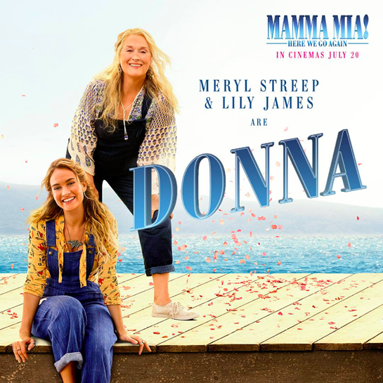 Sau mười năm Mamma Mia!, phần hai mang tên Mamma Mia! Here We Go Again đã trở lại với toàn bộ dàn diễn viên cũ. Tại đây, Sophie (Amanda Seyfried) phát hiện mình mang thai. Cô bắt đầu nhìn về tương lai, đồng thời khám phá ra quá khứ của mẹ mình là Donna Sheridan qua lời các người bạn cùng ban nhạc của bà là Tanya Chesham-Leigh (Christine Baranski) và Rosie (Julie Walters). Nữ diễn viên Lily James vào vai Donna khi còn trẻ trong khi Cher hóa thân thành mẹ của Donna.