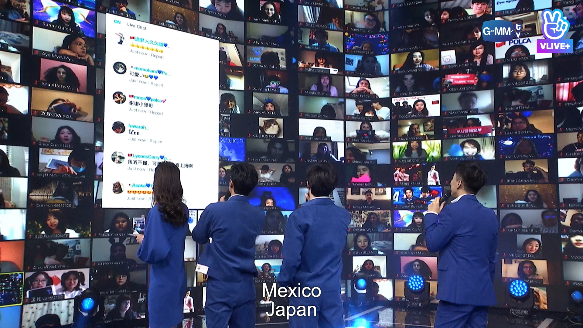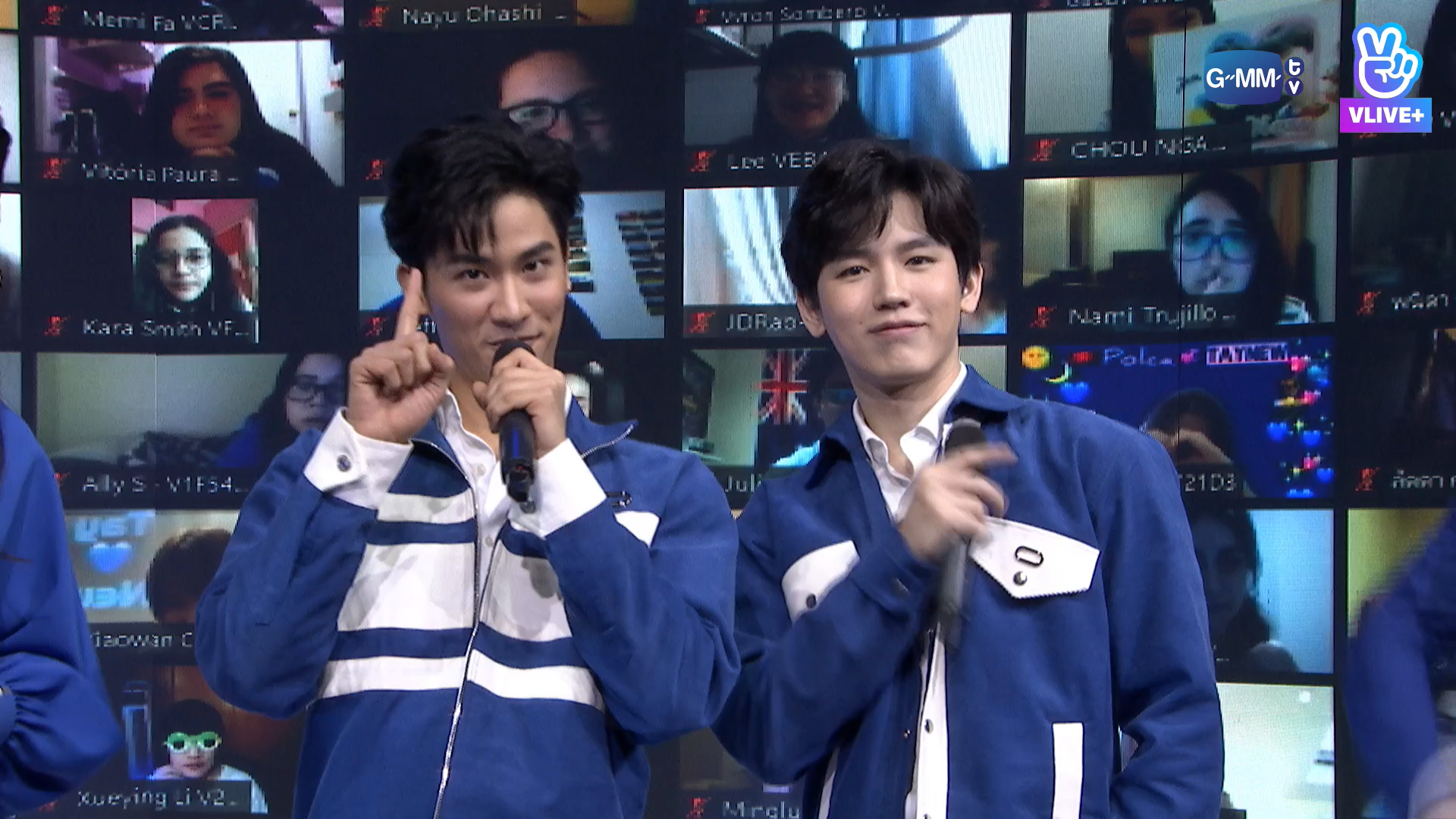 Sau màn trình diễn, cặp đôi Tay – New cùng gửi lời chào bằng nhiều thứ tiếng cho những khán giả đang xem Globle Live Fanmeeting trực tuyến trên toàn thế giới. Trên màn hình lớn, 200 fan may mắn thay phiên nhau được xuất hiện để có thể ngắm nhìn, giao lưu với thần tượng. Khác với bất kỳ fanmeeting nào trước kia, cả hai cảm thấy vô cùng đặc biệt, hào hứng khi được tương tác với fan qua màn hình phía sau lưng mình.