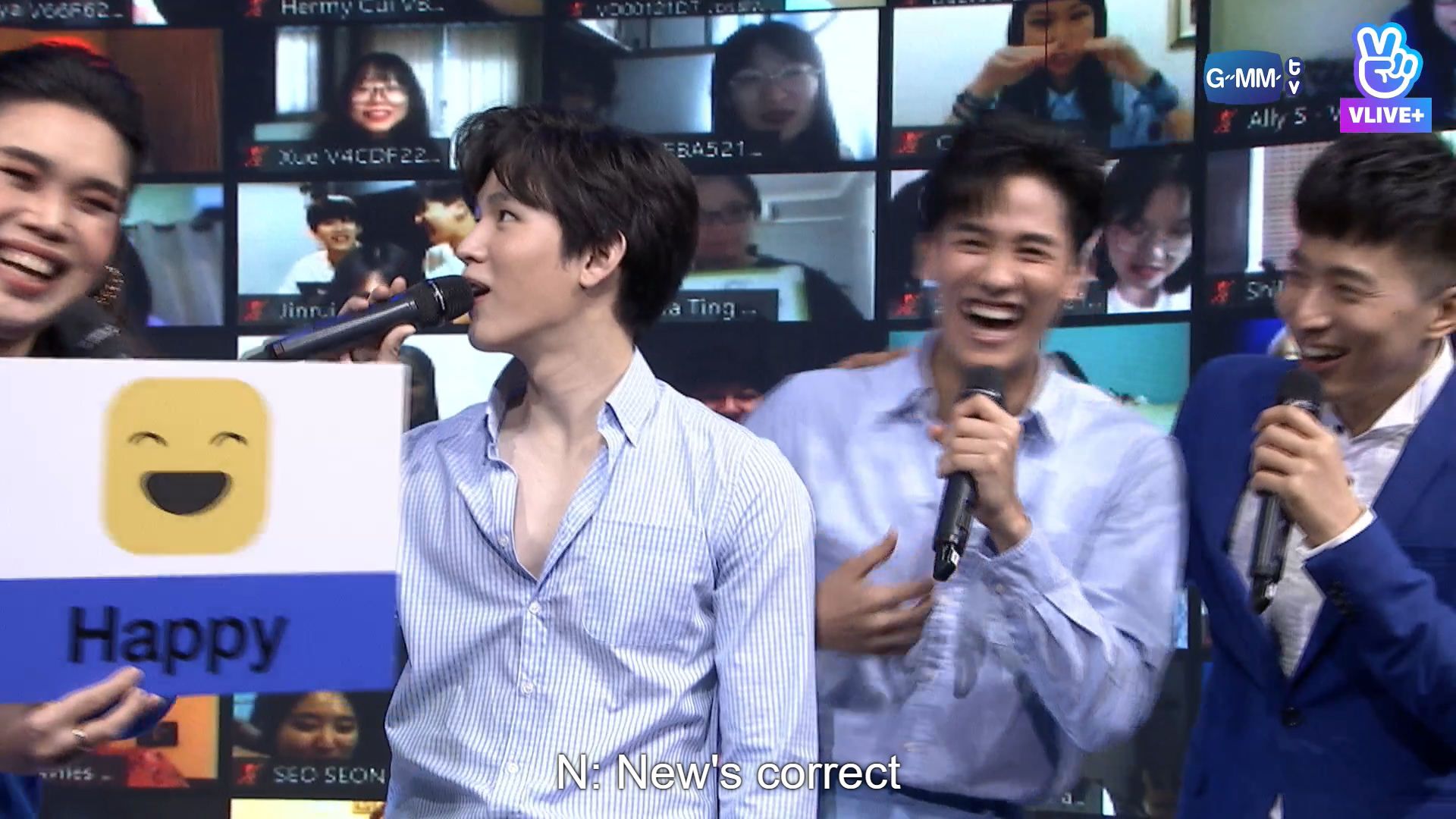 Gần cuối chương trình, cặp đôi được chơi trò “đuổi hình bắt chữ” tương tác trực tiếp với người hâm mộ. Trong đó, các fan sẽ được nhìn và miêu tả đáp án để Tay-New đoán ra câu trả lời cuối cùng. Với trò chơi này, có vẻ như anh chàng New đã chiếm được ưu thế hơn hẳn.