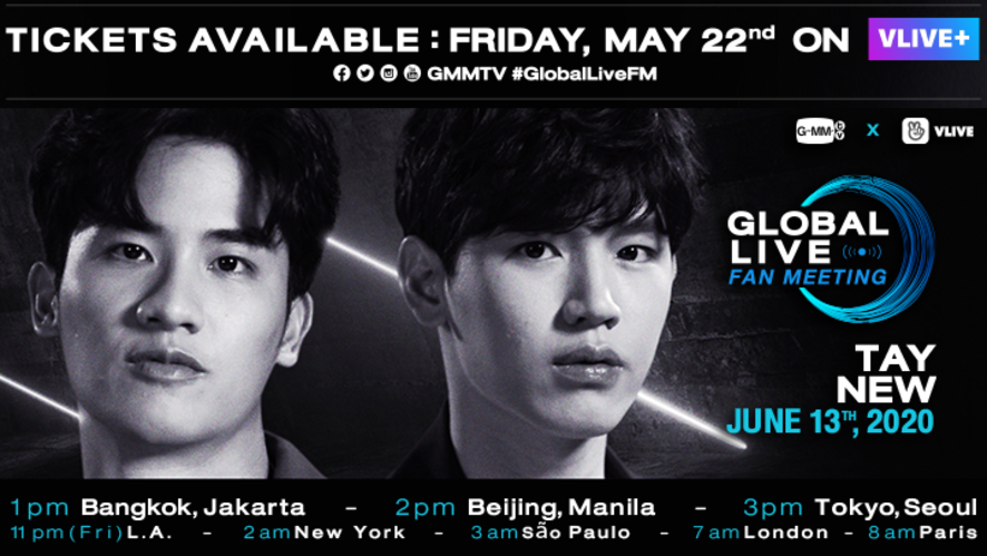 Hiện tại, thông tin về thời gian diễn ra Globle Live Fanmeeting và link bán vé đã được cập nhật trực tiếp trên VLive. Link thông tin bán vé chung tại đây hoặc Kênh VLive chính thức của GMMTV. Xem clip dàn sao GMMTV chào fan bằng 8 thứ tiếng tại đây.