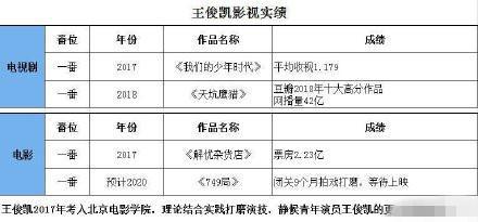Có cư dân mạng liệt kê danh sách những bộ phim điện ảnh và truyền hình của Vương Tuấn Khải trong 2 năm qua, bao gồm: Thời đại niên thiếu của chúng ta (我们的少年时代), Thiên Khanh Ưng Liệp (天坑鹰猎), phim điện ảnh Tiệm tạp hóa giải ưu (解忧杂货店), và bộ phim Cục 749 chưa công chiếu.