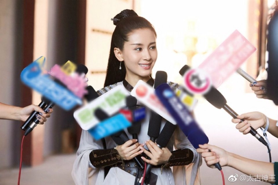 Vương Tử Văn trong tạo hình cổ trang nhận phỏng vấn của phóng viên