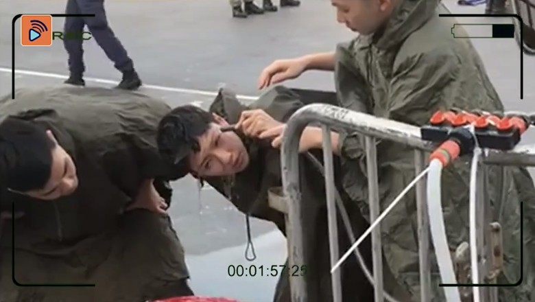 Thái Tư Bối không ngoại lệ, lúc rửa mắt cô muốn dùng khăn để rửa cùng nhưng nhân viên trong đoàn bảo không thể làm vậy được, chỉ có thể mở to mắt ra mà rửa thôi khiến cho Thái Tư Bối kêu la thảm thiết.