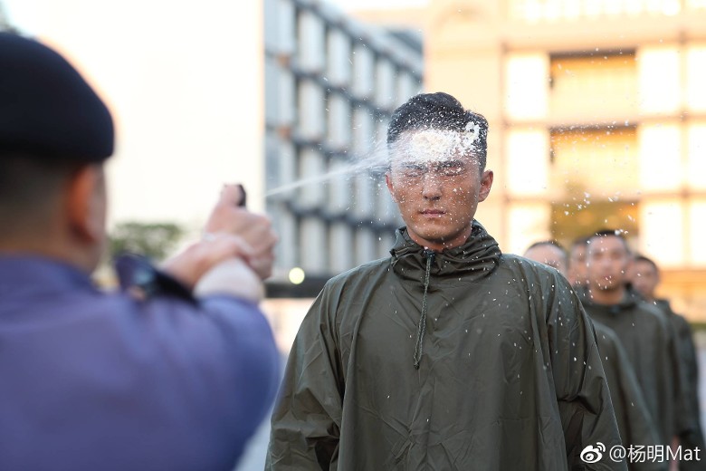Lúc đầu giám chế của phim Biệt đội cơ động 2019 (機動部隊2019) bảo có thể dùng đạo cụ để thay thế nhưng dàn diễn viên này muốn đóng sao cho hay và cảm giác như thật nên đã lấy hết dũng khí thử bình xịt hơi cay một lần. Dương Minh cùng Trương Đạt Luân sau khi diễn xong, ngay lập tức dùng vòi nước mạnh để rửa mắt và toàn bộ phần mặt.