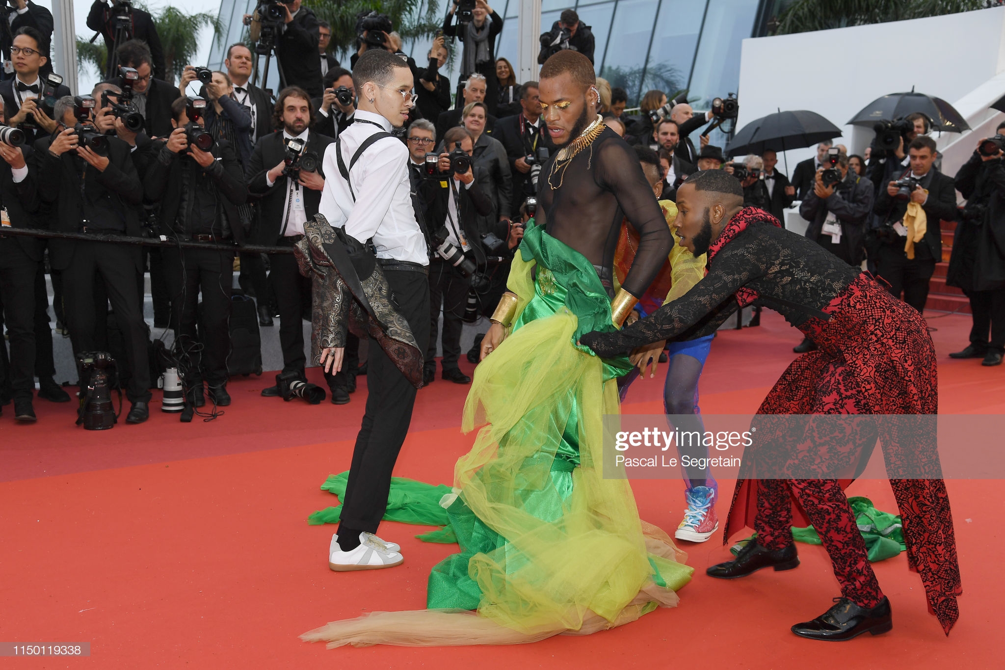 Không khí, màu sắc trên thảm đỏ Cannes cũng chẳng khác những ngày trước là bao. Tuy nhiên, có một sự kiện xảy ra khiến nó trở nên khác hẳn với những năm trước. Thảm đỏ ngày hôm nay đã thực sự trở thành một “mớ” hỗn độn với sự hiện diện của những nhân vật ăn mặc theo style “dị - độc - lạ”, tạo dáng “lố lắng” hòng lọt vào ống kính của nhiếp ảnh gia quốc tế.