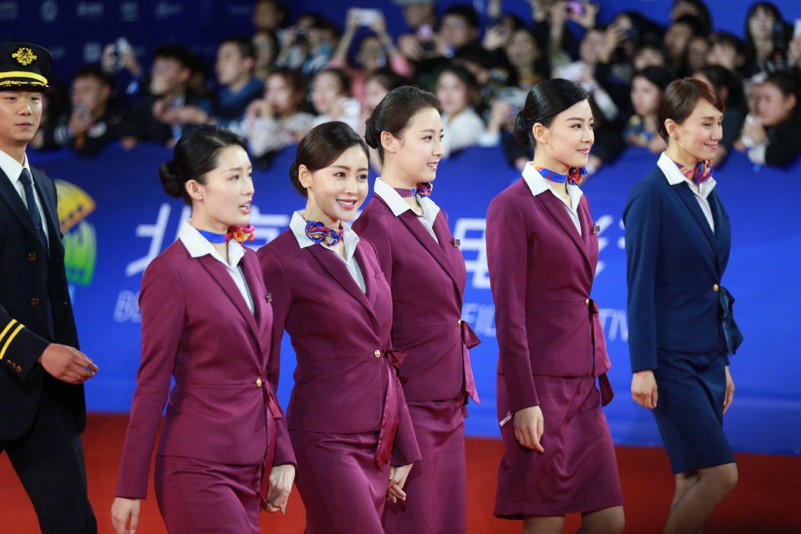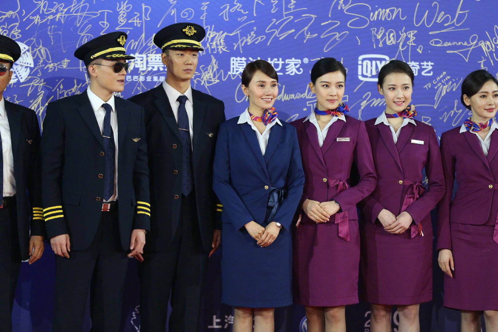 Trương Hàm Dư, Âu Hào, Đỗ Giang, Viên Tuyền, Trương Thiên Ái và Lý Thấm chào đón đại buổi bằng bộ trang phục phi công và tiếp viên hàng không.
