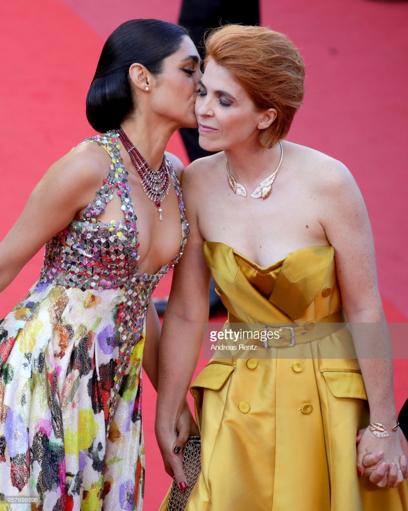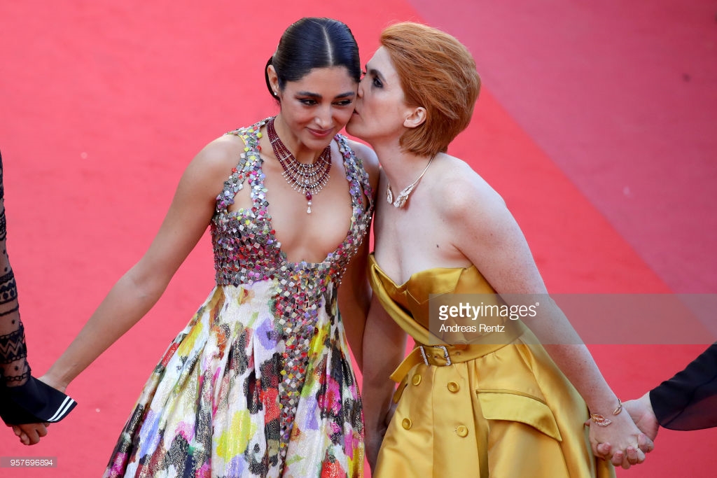 Chắc mặc đồ chưa quá nổi bật nên Golshifteh Farahani và đạo diễn Eva Husson đành phải “kiss” nhẹ để gây chú ý.