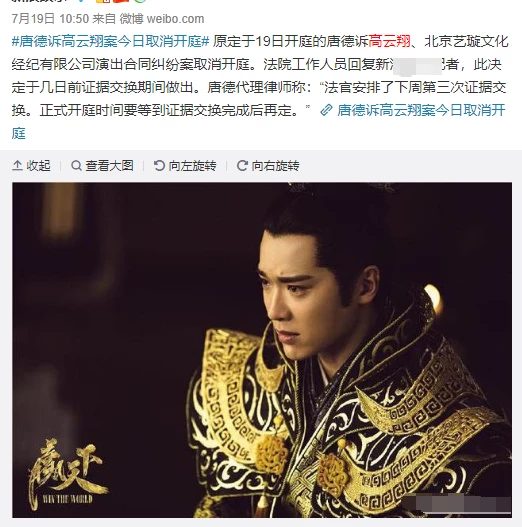 Scandal của Cao Vân Tường khiến bộ phim Ba Thanh truyện với trị giá hơn 800 triệu NDT một ngày của Đường Đức ảnh thị toàn bộ bị bốc hơi.