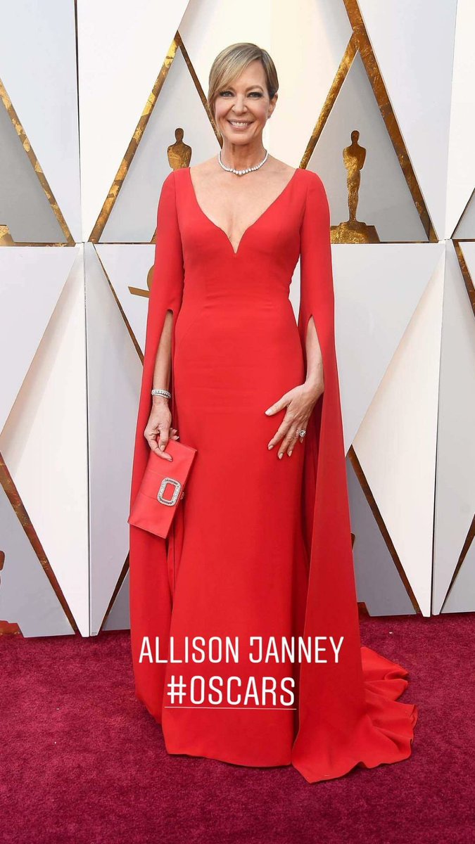 Allison Janney trong bộ váy đỏ của Reem Acra. Cô được đề cử ở hàng mục Nữ diễn viên phụ xuất sắc nhất trong “I, Tonya”.