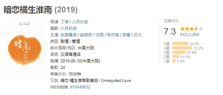 Cho nên đến cuối cùng này có thể nổi hay không thì cũng phải chờ vào lời nói trong tương lai. Không thể vừa mới mấy tập đầu đã đánh đồng cả toàn bộ tác phẩm phim như vậy được. Cho dù ai nói ngả nói nghiêng thì trong vài tập đầu, phim Thầm yêu: Quất sinh Hoài Nam đã đạt được con số là 7.3 trên Douban.