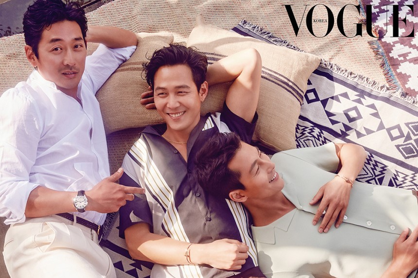 Chụp cùng Jung Woo Sung và Lee Jung Jae.
