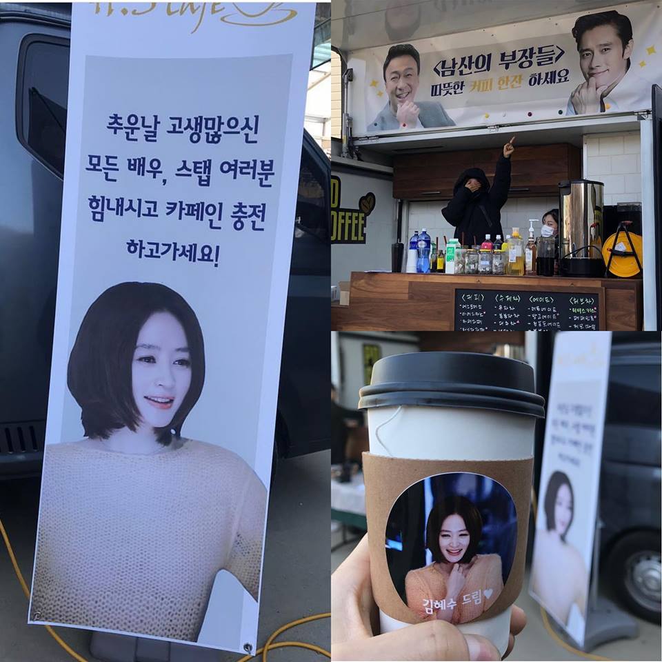 Những bức ảnh ghi rằng: “Tới các diễn viên và nhân viên đang làm việc chăm chỉ trong thời tiết lạnh giá, xin vui lòng đến uống thức uống tăng cường caffeine”, “từ Kim Hye Soo”, và “Chief of Namsan xin hãy uống một tách cà phê ấm”. Lee Byung Hun cũng cảm ơn nữ diễn viên về chiếc xe cà phê trong bài đăng của mình. Hai diễn viên là bạn cùng tuổi, cả hai đều sinh năm 1970.