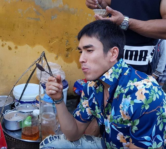 Nam thần Thái Lan không ngại người vỉa hè ăn vặt.