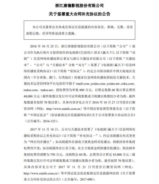 Hôm nay Đường Đức ảnh thị đã ra thông báo rằng sẽ hợp tác với công ty Thiên Mão để chỉnh sửa lại hình ảnh, phối cảnh của Thắng thiên hạ (tên mới: Ba Thanh truyện) trong thời gian từ đây đến khi hết năm. Được biết kinh phí dự kiến là 60 triệu NDT (~ 195 tỷ VND). Vì Cao Vân Tường dính phải tin cưỡng dâm và đang bị kiện tụng vây bám nên nhà sản xuất đã quyết định sử dụng phương pháp ghép mặt.