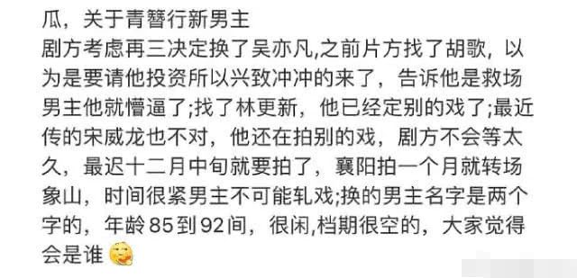 Ngay khi mọi người đang bán tín bán nghi, một số dân mạng Trung Quốc đã lan truyền tin tức cho rằng: “Thanh trâm hành khởi động máy nữ chính không thay đổi, vẫn là Dương Tử. Thế nhưng, nam chính sẽ từ Ngô Diệc Phàm chuyển sang Lý Hiện“.