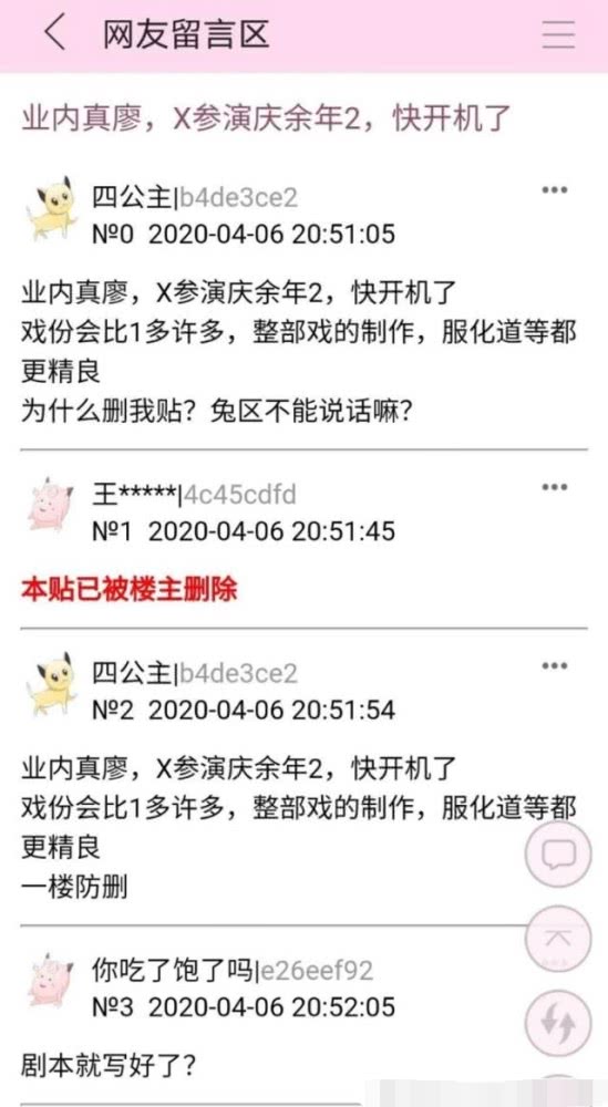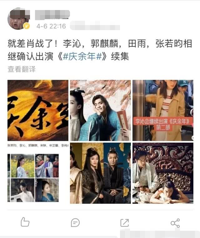 Ngày 6 tháng 4, blogger tiết lộ Tiêu Chiến xác nhận tham gia vào phần 2 của Khánh dư niên, hơn nữa phim cũng sắp khai máy. Đất diễn của nam diễn viên trong phần hai sẽ nhiều hơn so với phần đầu, chế tác, trang phục, đạo cụ của cả bộ sẽ còn tốt hơn nữa.