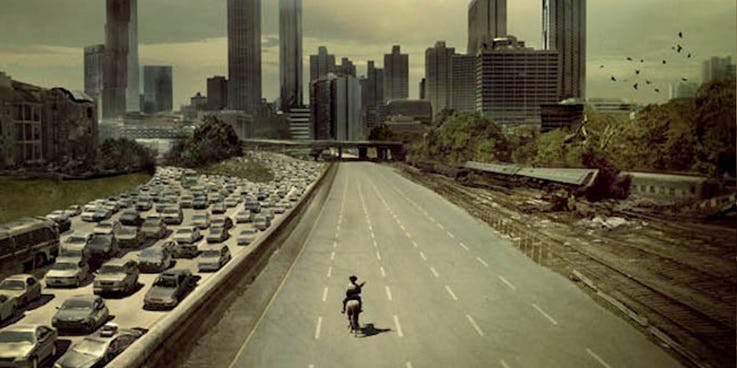 . Khi Rick đến được thành phố bằng con ngựa, anh đã phải đi lang thang để tìm đường về nhà, và ngay sau đó là màn đụng độ với một bầy xác sống. Ngay khi anh định tự tử, thì cũng là lúc một lối thoát mở ra, khi Rick tìm thấy một chiếc xe tăng. Anhđã trốn trong đó, khi lũ quái vật xé xác con ngựa làm trăm mảnh.