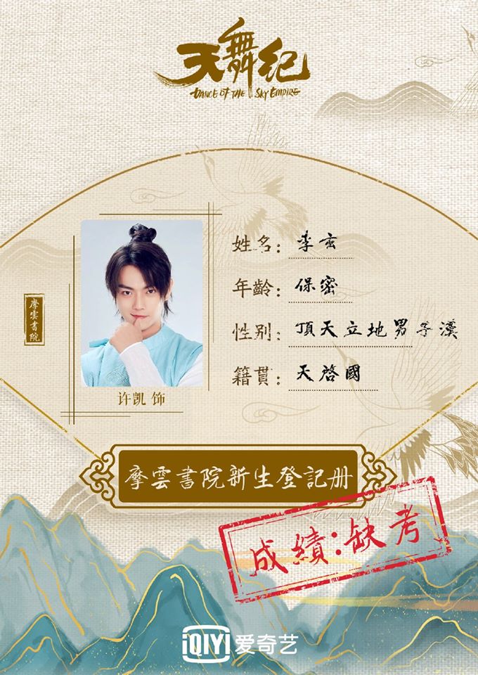 Bộ phim web-drama Thiên vũ kỷ (天舞纪) của Iqiyi hợp tác với truyền thông Trường Tín, Ảnh thị Thế giới Hoàn Mỹ thuộc thể loại cổ trang, thanh xuân, vườn trường đã chính thức tuyên bố dàn diễn viên của phim. Đầu tiên là trang cá nhân của phim đăng tải tin tức của từng diễn viên gồm có Hứa Khải, Ngô Giai Di, Lý Tuấn Thần, Cáp Ni Khắc Tư, Chu Tuấn Siêu, Vu Hâm Đồng.
