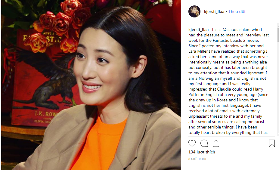 Vào ngày 07/11 vừa qua (theo giờ địa phương), phóng viên Kjersti Flaa đã đăng tải đoạn video cuộc phỏng vấn về Ezra Miller và Kim Soo Hyun (Claudia Kim) của siêu phẩm bom tấn điện ảnh Sinh vật huyền bí: Tội ác của Grindelwald (Fantastic Beasts: The Crimes of Grindelwald) trên kênh Youtube.