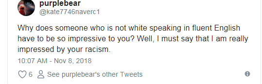 “Tại sao bạn không thể thừa nhận mình đã sai? Các nhận xét của bạn rõ ràng là phân biệt chủng tộc với những người không giống bạn. Nhiều người trên khắp thế giới có thể nói nhiều ngôn ngữ trôi chảy. Đừng cố hành động như mình vô tội nữa. Đó chỉ là sự thiếu hiểu biết của bạn thôi”. “Tại sao bạn lại ấn tượng với một người không thông thạo Anh? Vâng, tôi phải nói rằng tôi thực sự ấn tượng bởi sự phân biệt chủng tộc của bạn đấy”.