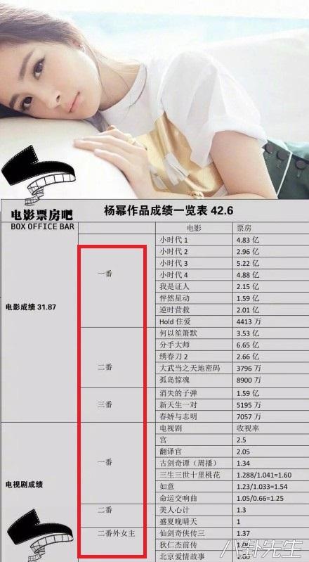 Ví dụ như trong bảng thống kê thành tích dưới tay của fan hâm mộ, họ đều đặc biệt chú ý đến thần tượng của mình trong tác phẩm điện ảnh, truyền hình họ đảm nhận vai trò gì, nữ chính, nữ thứ hay nữ phụ…