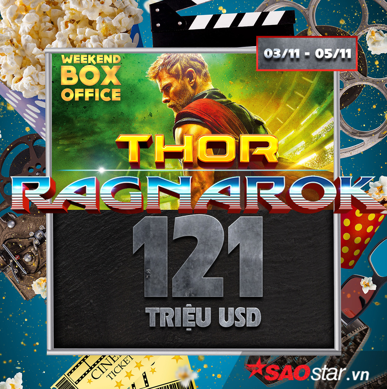 Thor: Ragnarok đứng thứ 7 về doanh thu mở màn.