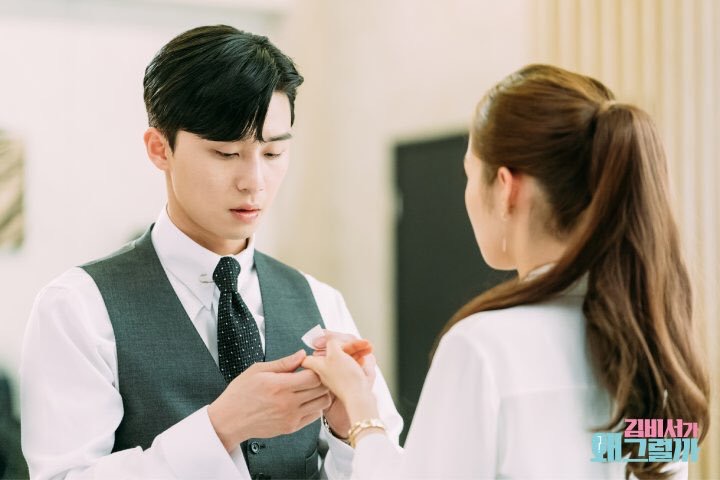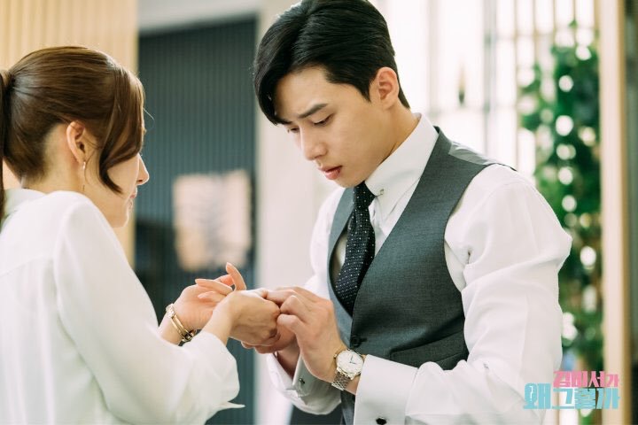 Bức ảnh đầu tiên đã gợi ý một tình tiết nhỏ nhưng lại rất quan trọng, đó chính là sự thay đổi trong khoảng cách vai vế, cấp bậc. Trong suốt chín năm ròng rã phục vụ dưới quyền và luôn phải ở đằng sau sếp, thì đây hẳn là lần đầu cô thư ký tự tin bước lên trước, mặc kệ Lee Young Joon.