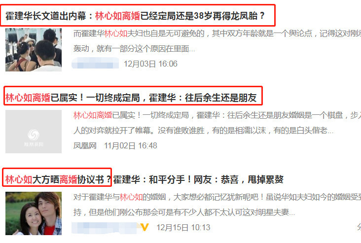 Bên cạnh đó, một trang báo điện tử cũng đã trực tiếp đăng tải lên bài viết: “Lâm Tâm Như ly hôn đã trở thành một kết cục không thể thay đổi”. Đồng thời trong bài viết còn xuất hiện: “Hoắc Kiến Hoa: Phần đời còn lại chúng ta trở thành bạn tốt” làm cho cộng đồng mạng một phen thất kinh hồn vía.