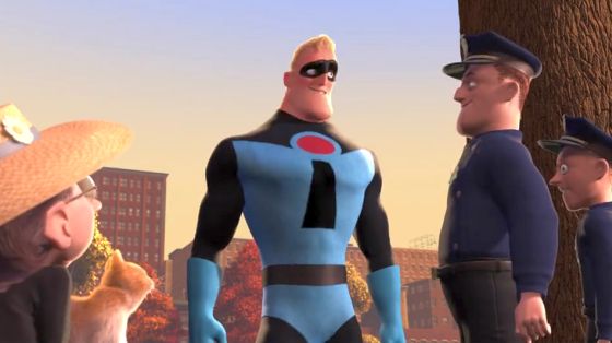 Điều này được thể hiện rất rõ trong đầu phần 1 The Incredibles - ông bố Bob (tức Mr. Incredible) đang trên đường đến đám cưới của mình thì bị dừng lại chỉ vì… có con mèo bị mắc trên cây cao. Bob đã phải xuống xe, nhổ bật cả gốc cây lên mà con mèo vẫn mãi chẳng chịu xuống. Rõ ràng là hàng xóm, hay cảnh sát hoàn toàn có thể giúp gỡ con mèo xuống mà chẳng cần siêu sức mạnh như Mr. Incredible.