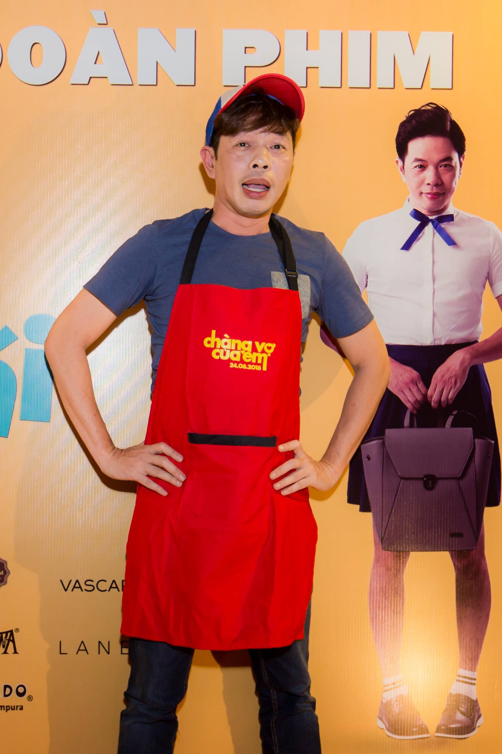 Thái Hòa diện tạp dề của “Chàng vợ của em”.