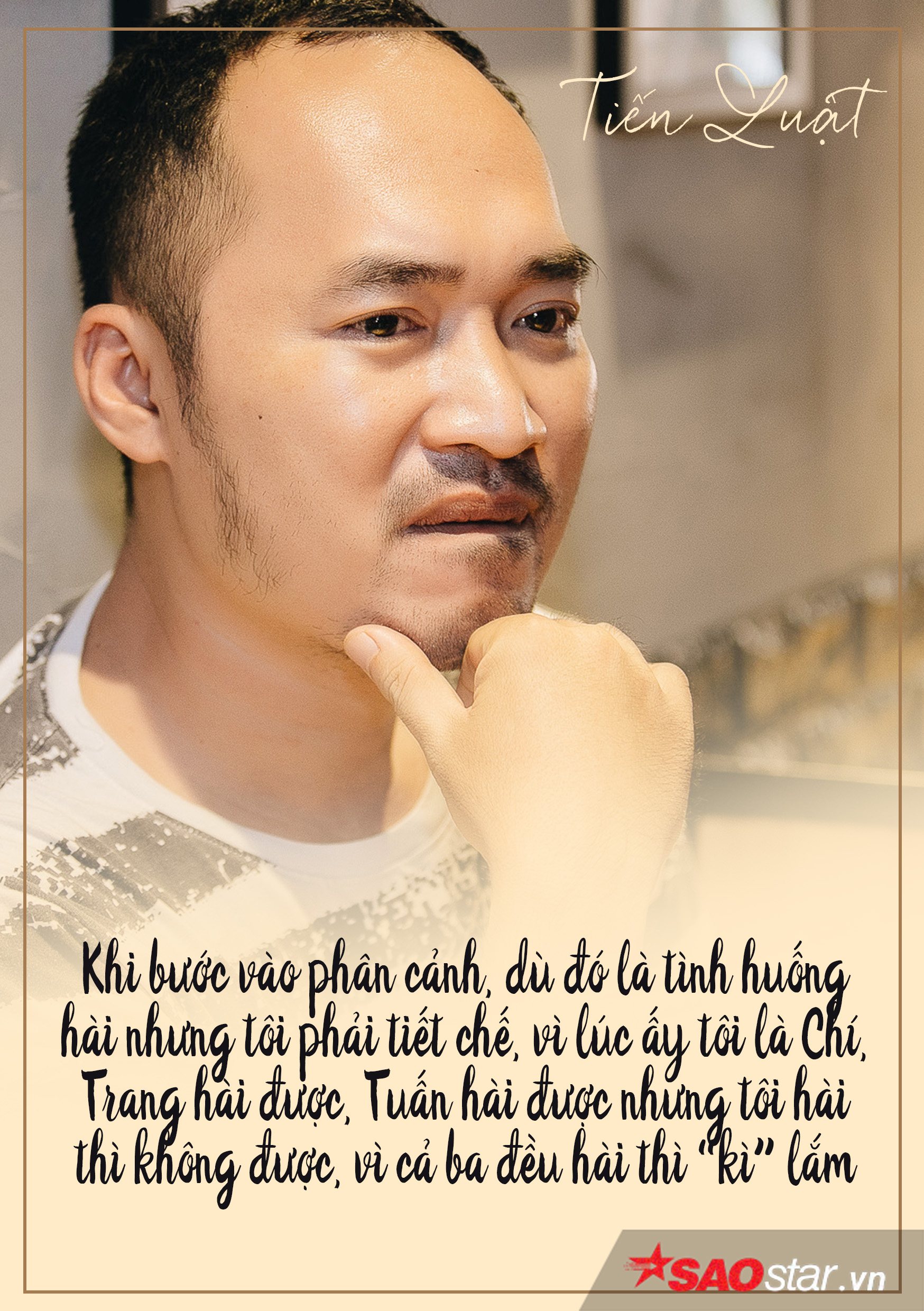 Không phải là một gương mặt quá quen thuộc với dòng phim điện ảnh, ấy vậy mà mỗi khi vai diễn của anh xuất hiện vẫn luôn để lại trong lòng khán giả những ấn tượng khó quên, cái chất hài tưng tửng của Tiến Luật chưa bao giờ làm người hâm mộ phải nhàm chán. Trong lần trở lại màn ảnh lần này, anh chọn cho mình một “chiếc áo” mới, một nét diễn mới như để khẳng định Tiến Luật còn có thể biến hóa nhiều hơn sự kỳ vọng mà khán giả dành cho mình.