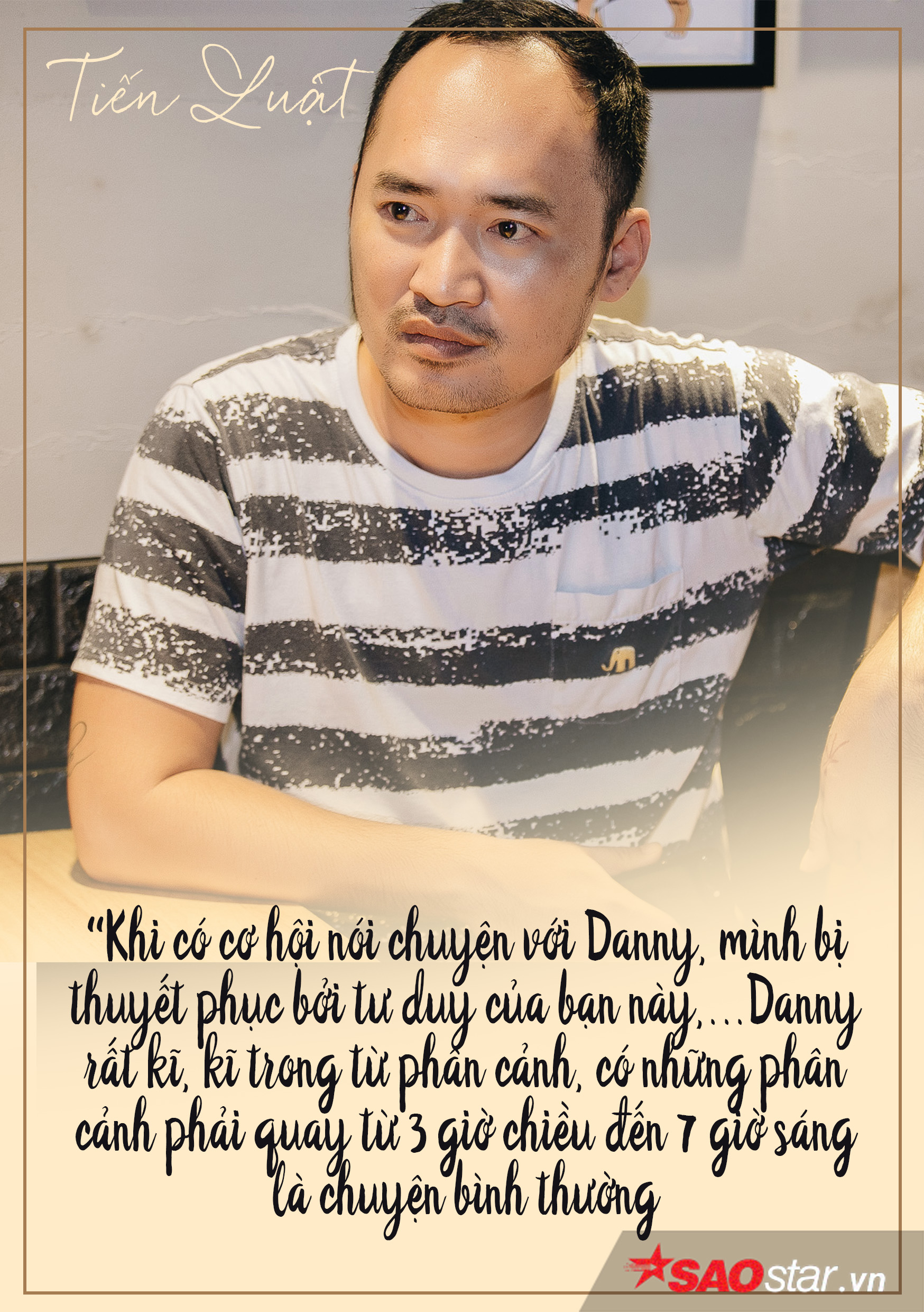 Tiến Luật cũng cảm thấy thán phục ekip làm phim Chí Phèo ngoại truyện khi chăm chút chi li ở khâu chuẩn bị, dàn dựng cảnh trí rất công phu để diễn viên có thể thể hiện tốt nhất phân cảnh của mình. Bên cạnh đó còn là hình bóng của những bạn cascadeur làm việc miệt mài hỗ trợ hết mình cho nghệ sĩ. “Các bạn diễn rất nhiệt tình, không ngại nguy hiểm…Ở phân cảnh chiếc xe container ghi hình những pha hành động, bánh xe nặng bốn tấn chỉ cách chân bạn cascadeur một chút, tôi ngồi trên xe tự nhủ thôi xong rồi. Ấy vậy bạn ấy vẫn vượt qua và sẵn sàng quay lại những phân cảnh của mình”. Vì thế, với anh không quan trọng tên tuổi đạo diễn hay ekip sản xuất, điều anh quan tâm là nội lực của đạo diễn, sự chuyên nghiệp hết mình của cả ekip cho thành quả sau cùng. Nếu “Thị Nở” Thu Trang từng bộc bạch muốn thử sức ở vai trò nhà sản xuất thì “Chí Phèo” Tiến Luật lại từ chối vị trí này bởi: “Tính tôi nghệ sĩ nên có lẽ công việc sản xuất không phù hợp với tôi”.