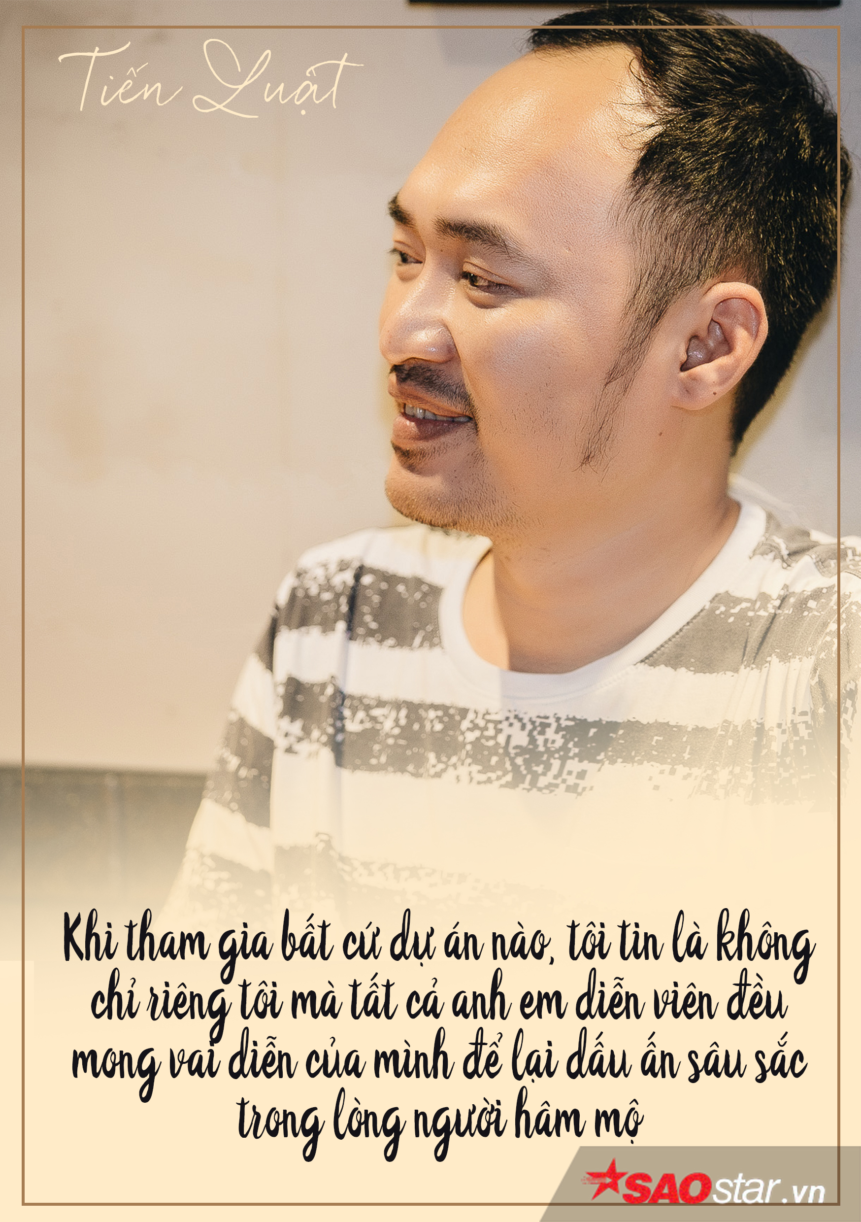 Và với Tiến Luật, anh chỉ âm thầm cống hiến, âm thầm đầu tư hết mình cho vai diễn bởi lẽ để có một nhân để đời trong tim khán giả ngoài sự may mắn còn cần có sự tận tâm, yêu nghề, yêu chính nhân vật mình đang hóa thân, như điều mà anh vẫn luôn tâm niệm mỗi khi làm nghề.
