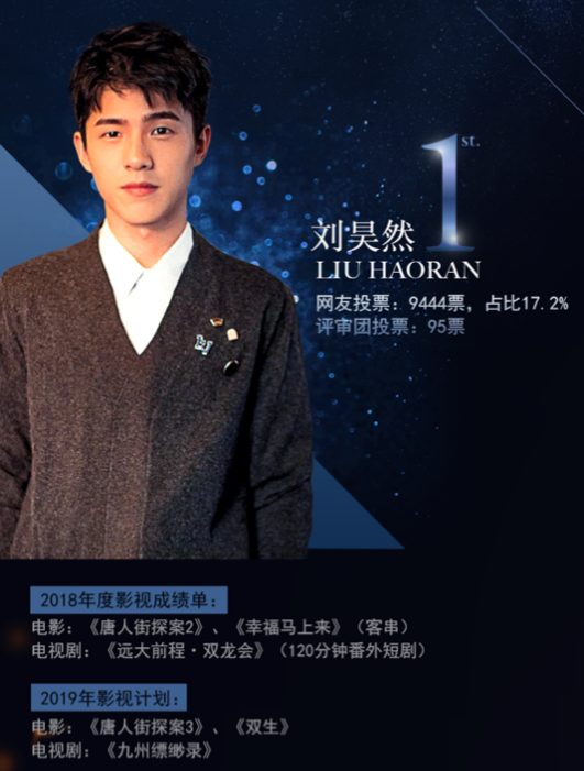 Trong tứ tiểu sinh sau 95 này Lưu Hạo Nhiên giành được vị trí thứ nhất với 9444 phiếu của cư dân mạng, chiếm 17,2%, và 95 phiếu của bình thẩm đoàn.