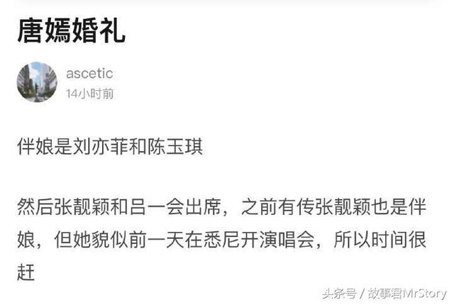 Tuy phía đại diện của Đường Yên chưa chính thức lên tiếng, nhưng khán giả đều cảm thấy rất vui mừng thay cho Đường Yên. Tuy nhiên trong danh sách đoàn phù dâu dự kiến lại không hề có tên của cô bạn thân Dương Mịch, hơn nữa trong số đoàn phù dâu còn có một cô bạn gái đã kết hôn.