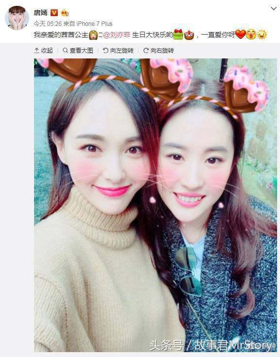 Có tin đồn rằng khi Lưu Diệc Phi bị ốm, Đường Yên còn đến tận nơi chăm sóc, hơn nữa hai người khi uống say còn cùng nhau đi KTV ca hát vui đùa, mối quan hệ cực kỳ thân thiết. Năm ngoái Lưu Diệc Phi cũng là người đầu tiên chúc mừng sinh nhật Đường Yên. Trước đó Đường Yên từng cập nhật tấm ảnh chụp chung với Lưu Diệc Phi và Đồng Đại Vĩ, trong ảnh Đường Yên và Lưu Diệc Phi tạo hình cực kỳ thân thiết.