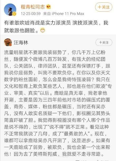 Không những cư dân mạng mà đến cả nhà biên kịch, đạo diễn nổi tiếng như Uông Hải Lâm hay Trình Thanh Tùng đều nhiều lần lên tiếng phê bình khả năng diễn xuất của Tiêu Chiến. Biên kịch Uông Hải Lâm đau lòng cho biết: “Nghề diễn không cần phải chỉ dạy từng li từng tí như thế này vì đó là điều sỉ nhục với ngành nghề này. Quay phim 20 năm không hề có đạo diễn dạy cách diễn làm như thế này, đây là phó đạo diễn!”. Trong khi đó, Trình Thanh Tùng - người sáng lập ra giải Cây chổi vàng thẳng thắn chỉ trích nam diễn viên: “Kẻ nào dám nổ Tiêu Chiến là diễn viên phái thực lực, diễn viên phái diễn xuất, tôi dám xé mặt kẻ đó”.