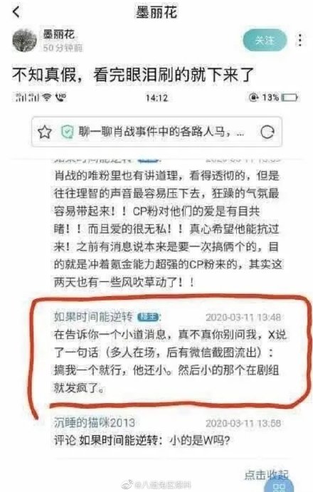 Mới đây, Weibo xuất hiện tin tức cho biết: “Sau khi xảy ra chuyện fan hâm mộ report trang AO3, Tiêu Chiến đã nói một câu trước mặt rất nhiều người: “Nhắm mình tôi là được rồi, cậu ấy vẫn còn nhỏ“. Nghe tin đàn anh nói câu này, Vương Nhất Bác đã sắp phát điên trong đoàn phim Hữu phỉ rồi”. Thậm chí thời gian trước đây, trên mạng cũng có tin Vương Nhất Bác và Tiêu Chiến chuẩn bị công khai quan hệ nhưng ngôi sao sinh năm 1991 không đồng ý, thu hút không ít sự tranh luân của cư dân mạng.