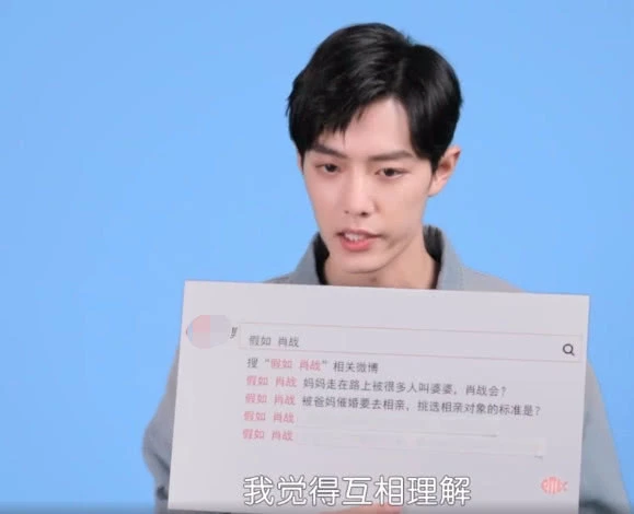 Có lần phóng viên đưa ra câu hỏi giả thiết: “Nếu Tiêu Chiến bị ba mẹ thúc giục hối cưới, vậy thì tiêu chuẩn chọn vợ, chọn bạn gái của anh là gì?“. Tiêu Chiến liền hồi đáp: “Dịu dàng, biết chăm sóc gia đình“. Ngoài ra, điểm trọng yếu mà Tiêu Chiến mong muốn ở chuyện tình cảm chính là cả hai thấu hiểu và đứng trên lập trường của nhau để suy nghĩ, cảm nhận cho đối phương.
