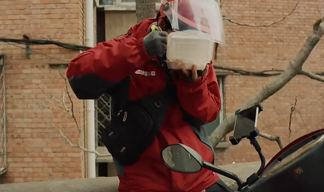 Người chở hàng mặc áo khoác đỏ chạy vào một quán ăn nhỏ bên đường mua cơm và người bán thuận miệng hỏi: Hôm nay lấy phần 15 đồng hay 8 đồng. Tiêu Chiến trong vai anh bán hàng đội nón bảo hiểm đã trả lời rằng: Cũng là lấy phần 8 đồng. Một câu nói tuy ngắn nhưng lại bao hàm rất nhiều nghĩa bóng.