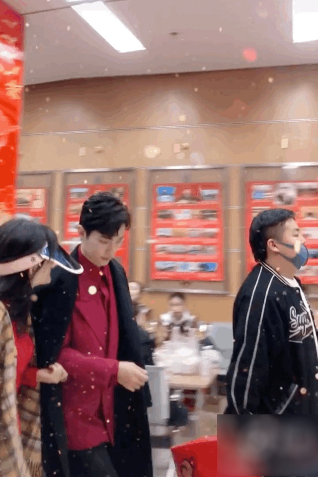 Tạ Na mặc trên người đầm dài màu đỏ tươi, khoác thêm một chiếc khăn choàng dài, ngoài ra còn đội thêm một cái nón tránh nắng như không muốn để lộ lớp trang điểm trên mặt. Tiêu Chiến mặc áo vest đỏ cùng với áo sơ-mi đỏ phối với quần tây đen. Thân hình cao ráo của Tiêu Chiến đã giúp anh chàng cộng thêm khá nhiều điểm.