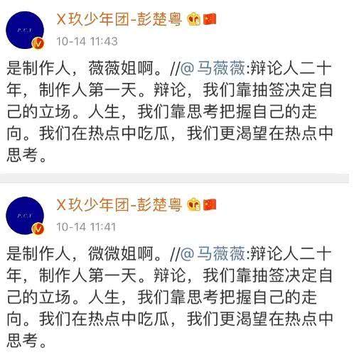 Sau khi đoạn phỏng vấn của Tiêu Chiến được đăng tải, nhà chế tác Mã Vi Vi đã chia sẻ weibo của chương trình, trong bài viết còn đặc biệt tag tên của Tiêu Chiến. Bành Sở Việt - thành viên của nhóm nhạc X NINE cũng chuyển tiếp bài viết này nhưng lại đã xóa đi phần nội dung có Tiêu Chiến. Với những hành động này, dân mạng hoàn toàn không hiểu hàm ý ám chỉ của thành viên X NINE là gì.